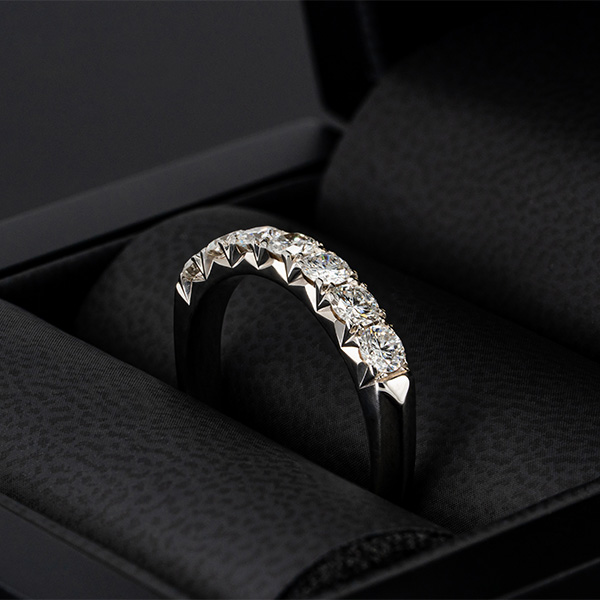 Aliança meia memoria em ouro branco com diamantes de 3mm com um total de 0.77cts Vvs1 em cravaçao francesa manual
